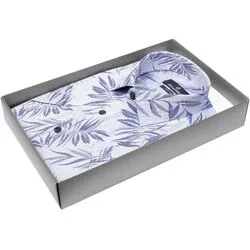 Синяя приталенная мужская рубашка Poggino 7004-48 в листьях с коротким рукавом