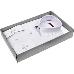 Коричневая приталенная мужская рубашка Poggino 7002-45 в абстракции с коротким рукавом